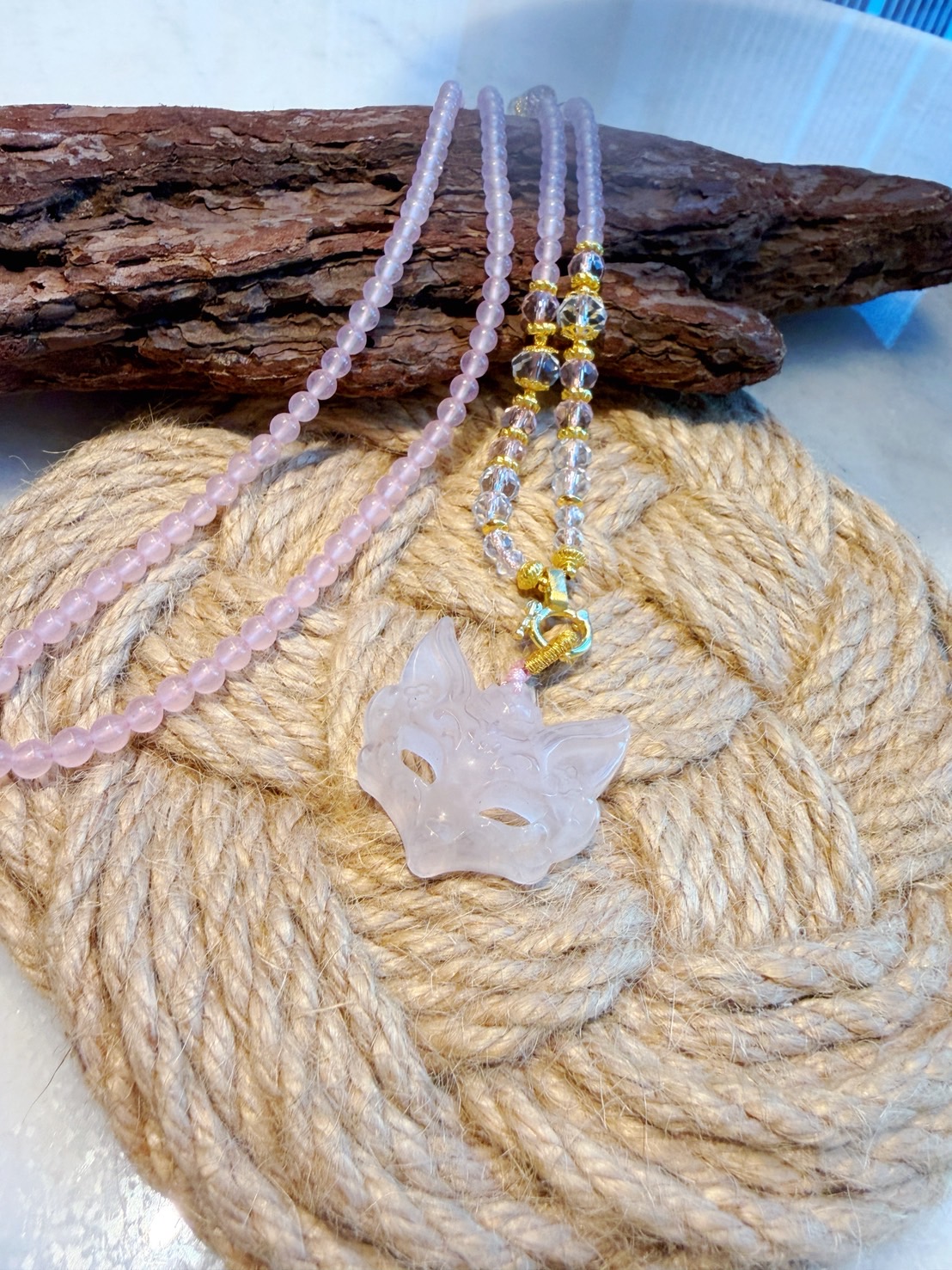 ❤️星光 粉水晶 面具 狐仙 水晶項鍊❤️