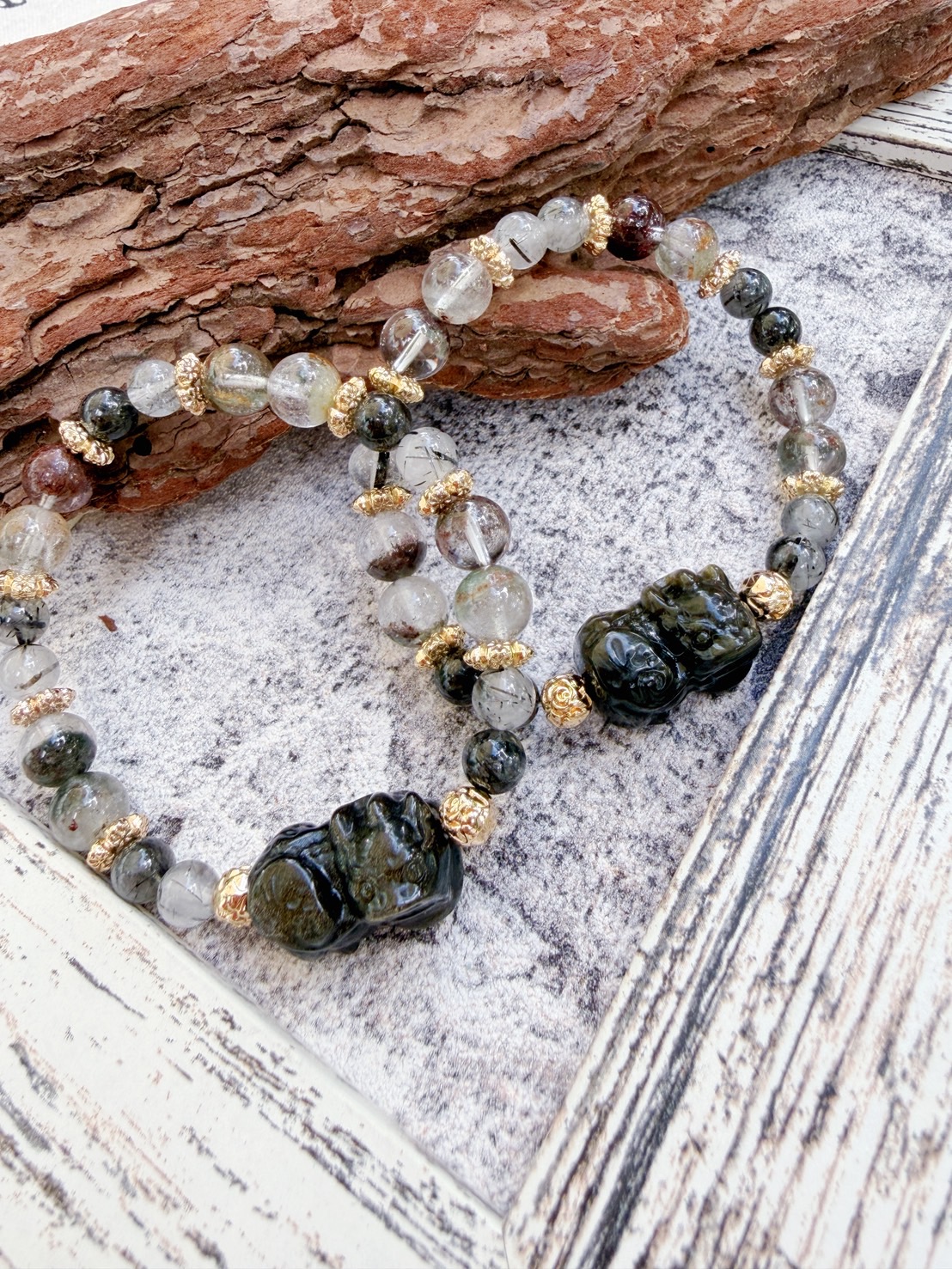 🎂1031🎂黑金曜石 招財貔貅/水晶手鍊