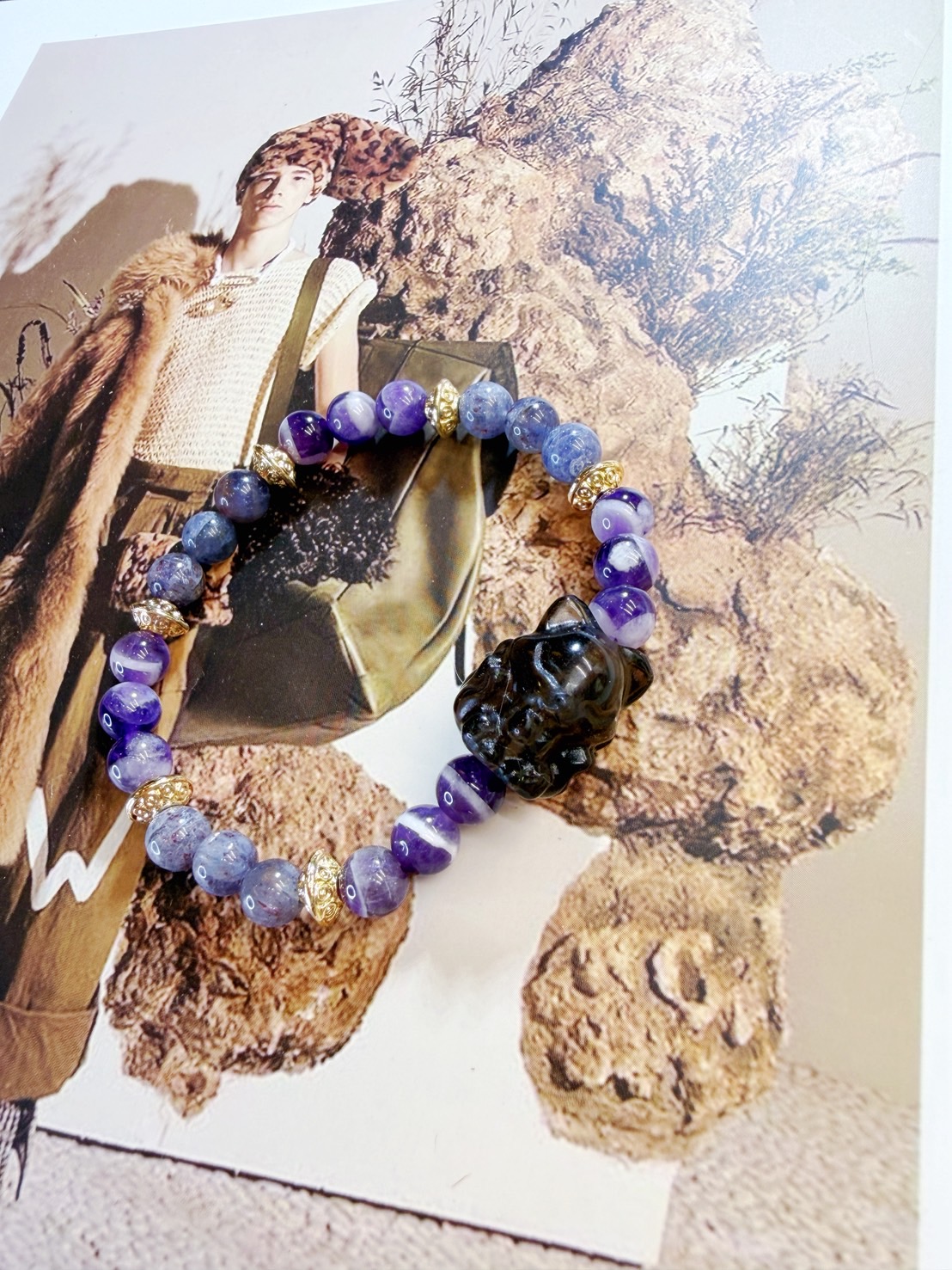 🙏🏻冰種 黑曜 桃花九尾狐仙 水晶手鍊🙏🏻