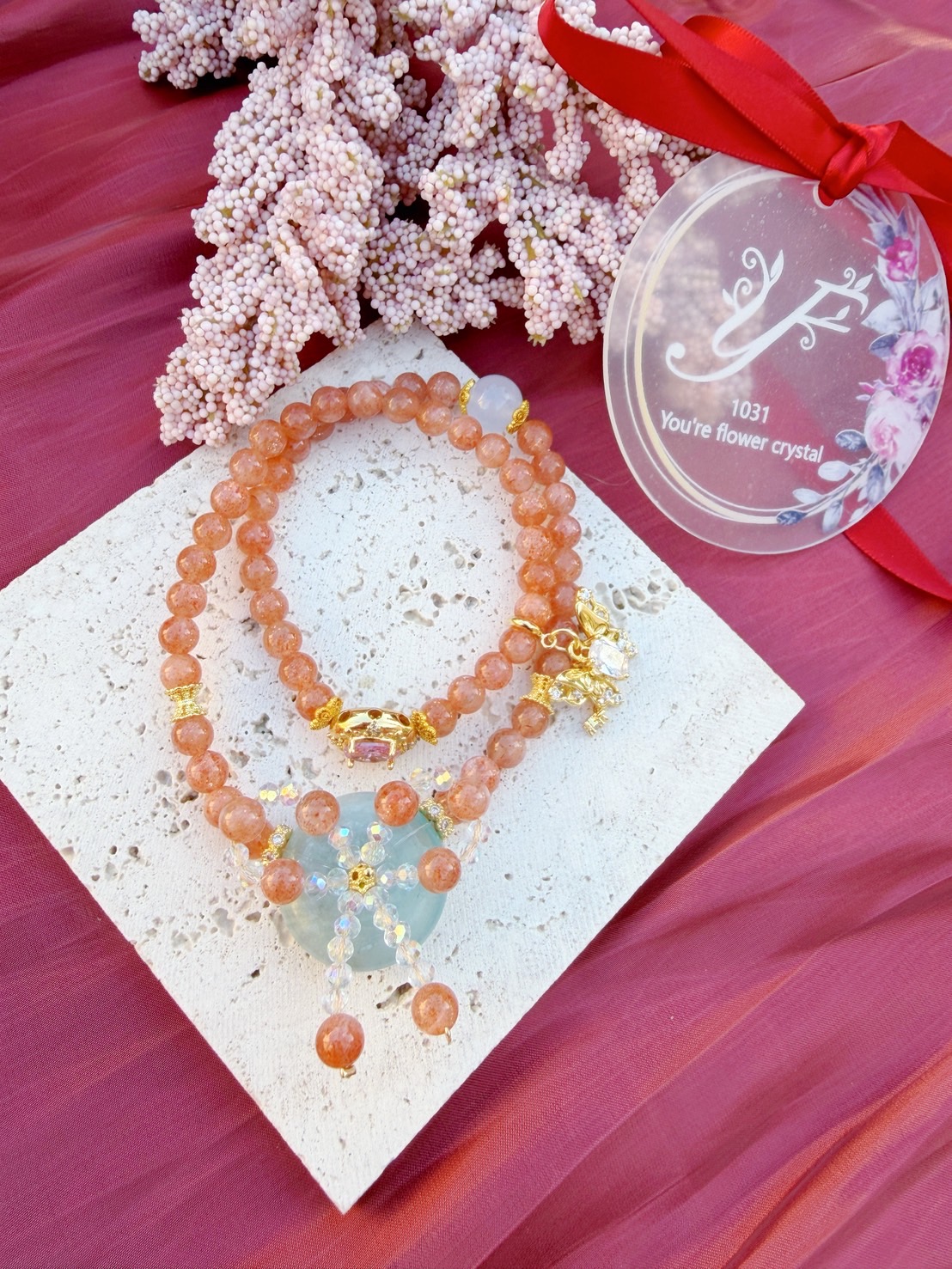 🙏🏻高檔 限量 金草莓x海藍寶平安扣 水晶手鍊🙏🏻