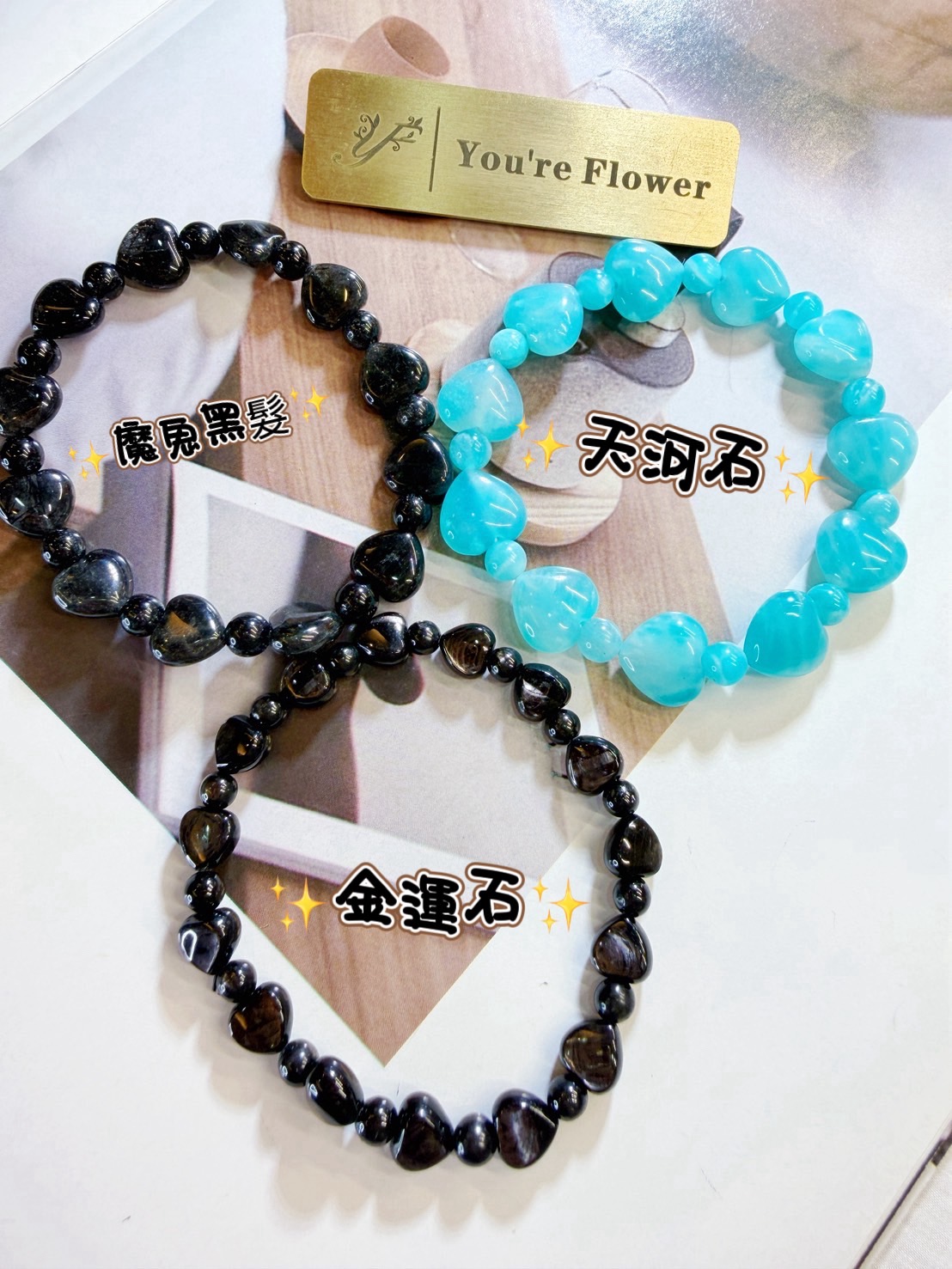 ❤️高品/天河石 黑髮晶 金運石/愛心水晶手鍊 系列❤️