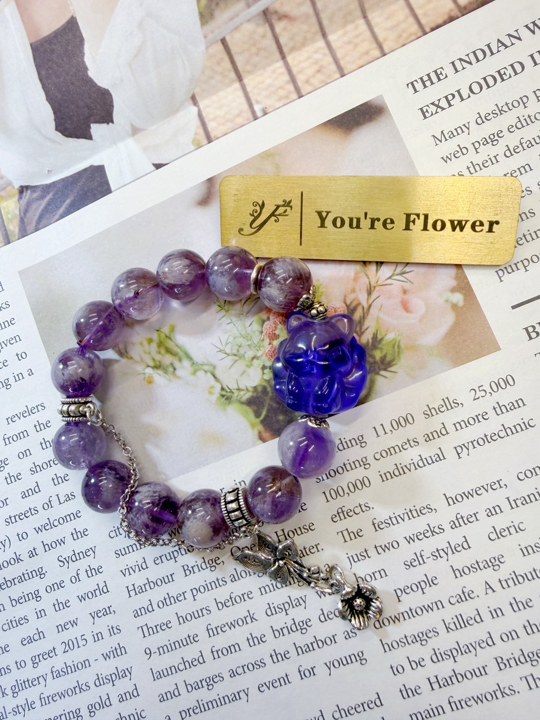 💜大顆粒精品唯一/紫螢石 九尾狐仙/水晶手鍊💜