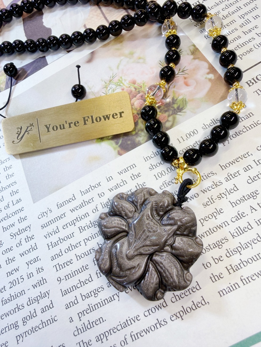 🖤唯一限定/黑銀曜石 九尾狐仙/水晶項鍊🖤