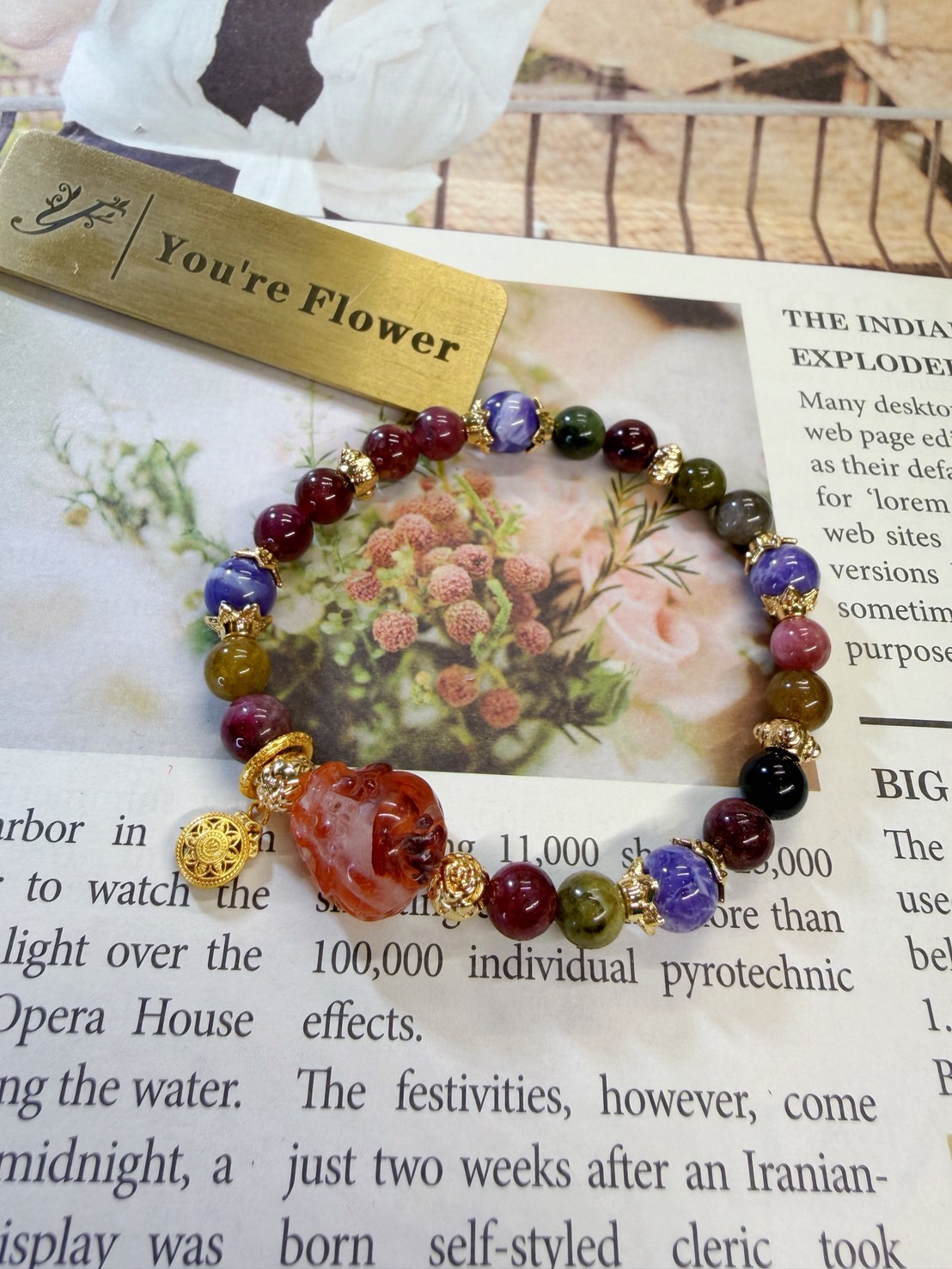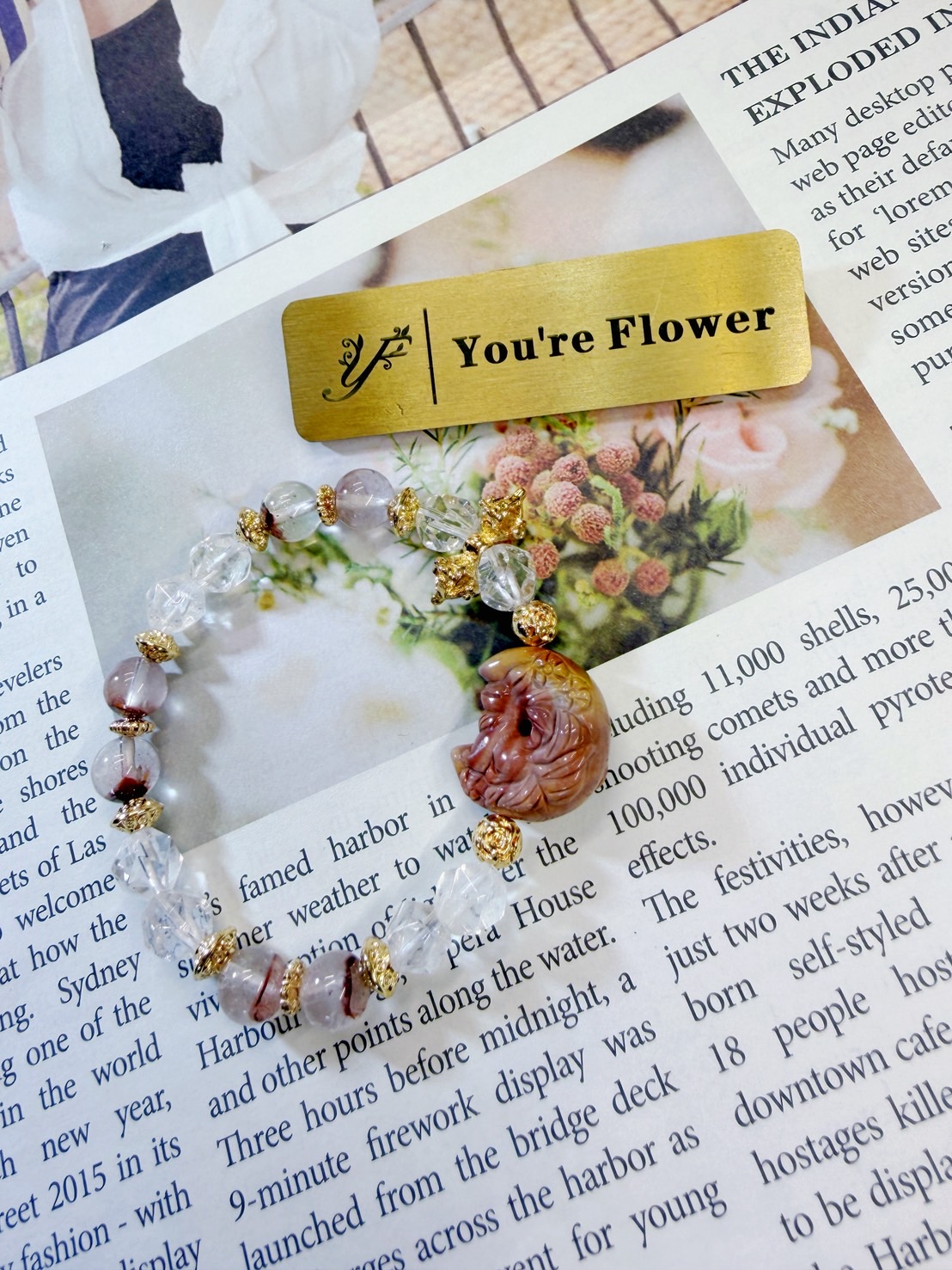 高貨唯一/貴人 紅膠花 招財龍龜/水晶手鍊