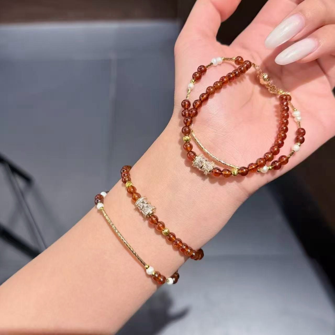 女人之石/芬達紅石榴石/雙圈設計款 水晶手鍊