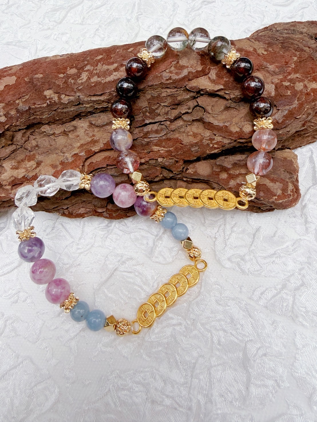 銀樓同款/14k招財五帝錢/水晶手鍊