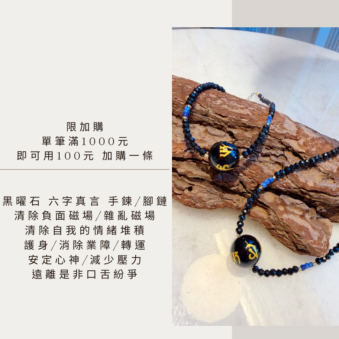 限滿千加購/100元 黑曜石六字真言 兩用手腳鏈