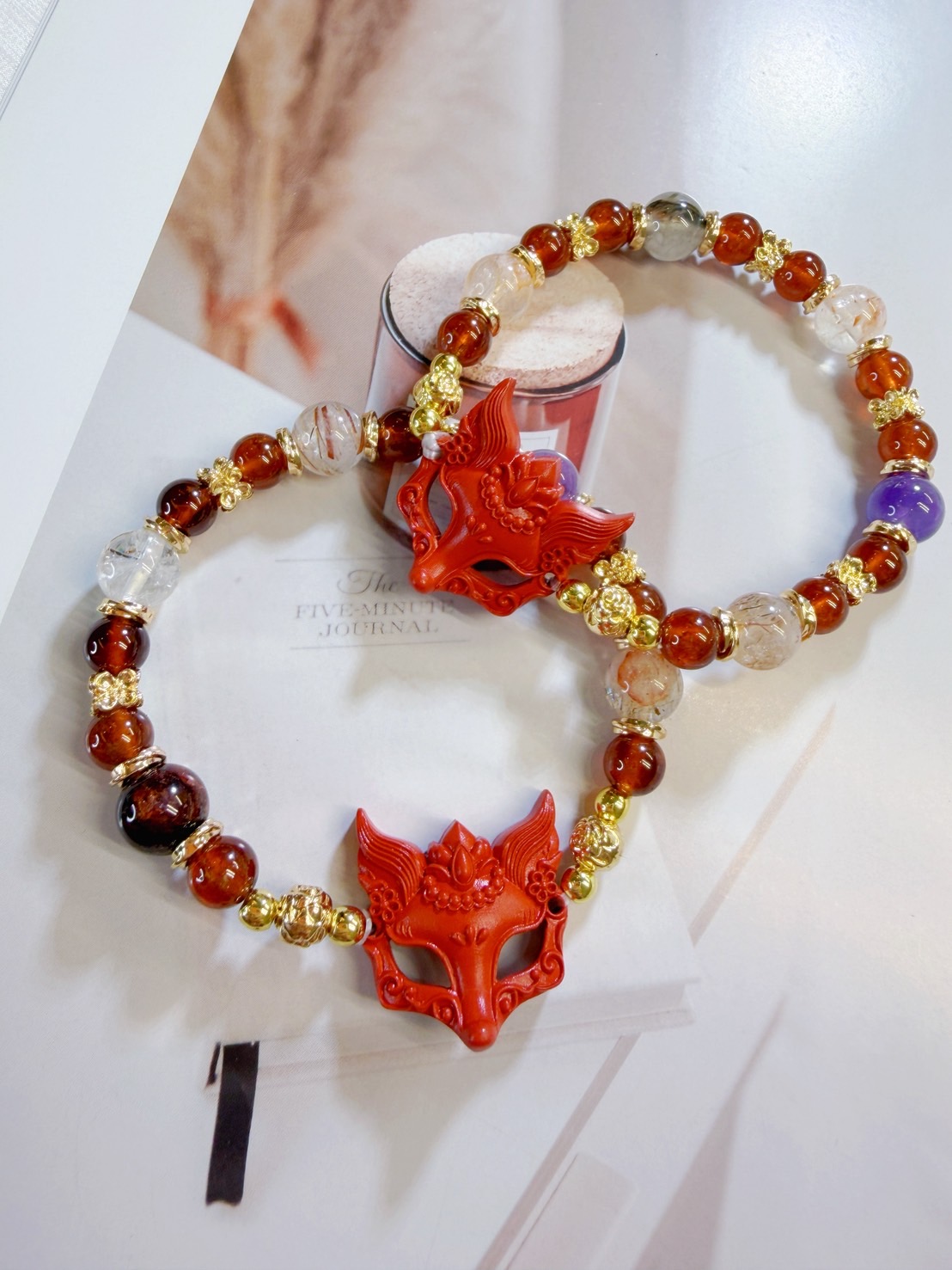 💗超美x晶體硃砂 面具 狐仙 手鏈💕