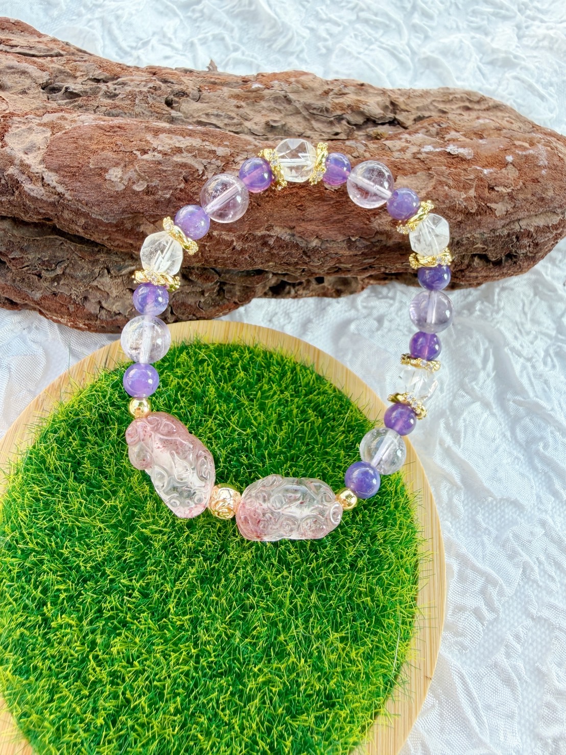 🙏🏻高貨唯一/白水體 草莓晶 雙貔貅 水晶手鏈🙏🏻
