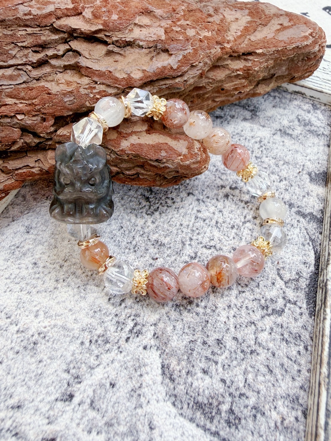 🦁稀少 黑銀曜石 醒獅 水晶手鏈🦁