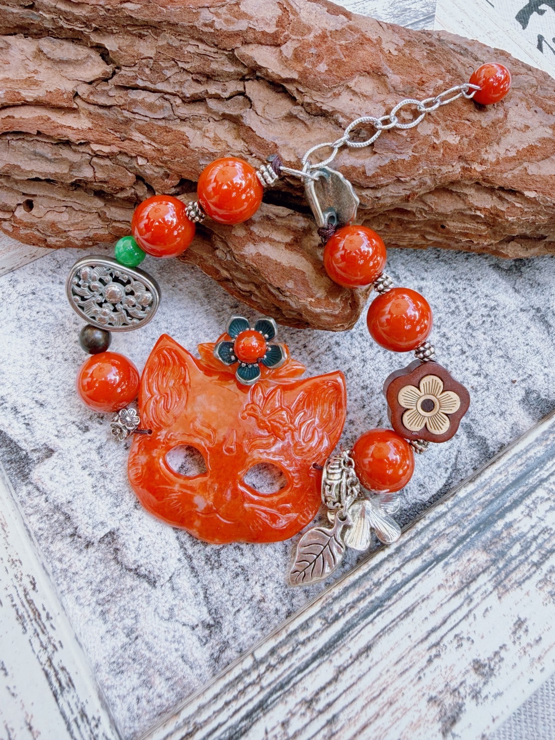 🙏🏻稀有x A貨紅翡翠 面具狐仙 手鏈🙏🏻